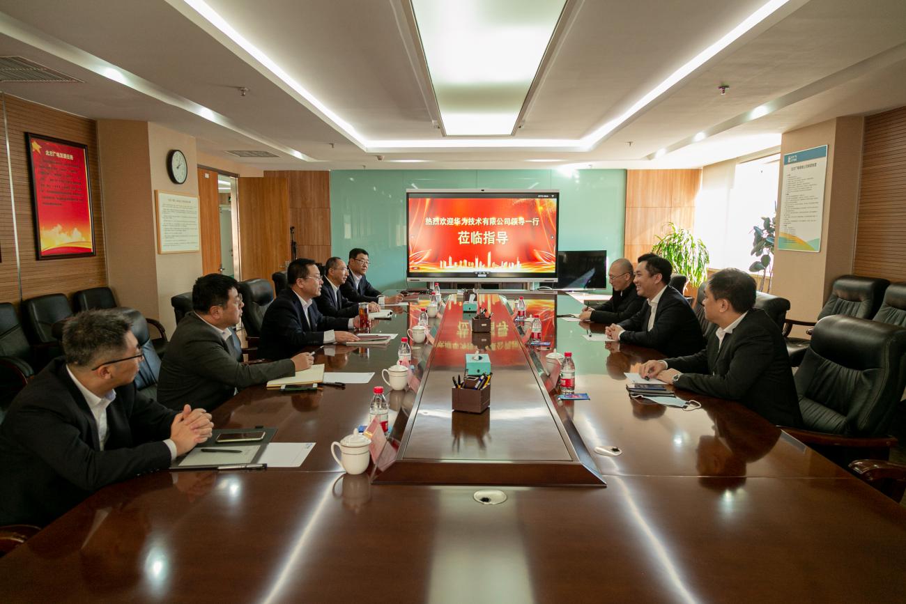 2021年10月19日下午,华为公司辽宁代表周斌及辽宁企业业务部副总经理苏亮、辽宁传媒业务行业代表王洪瀚一行莅临bw必威西汉姆联官网(简称bw必威西汉姆联官网)交流工作。bw必威西汉姆联官网党委书记、董事长、总经理曾绍武,副总经理张晓钧、总工程师王兆恒、总经理助理兼新业务中心总经理李笑阳,以及技术工程部总经理李大明、集团客户中心副总经理马睽一同进行了接待,双方就数字辽宁、智造强省建设及5G业务合作等问题进行了深入交流。
