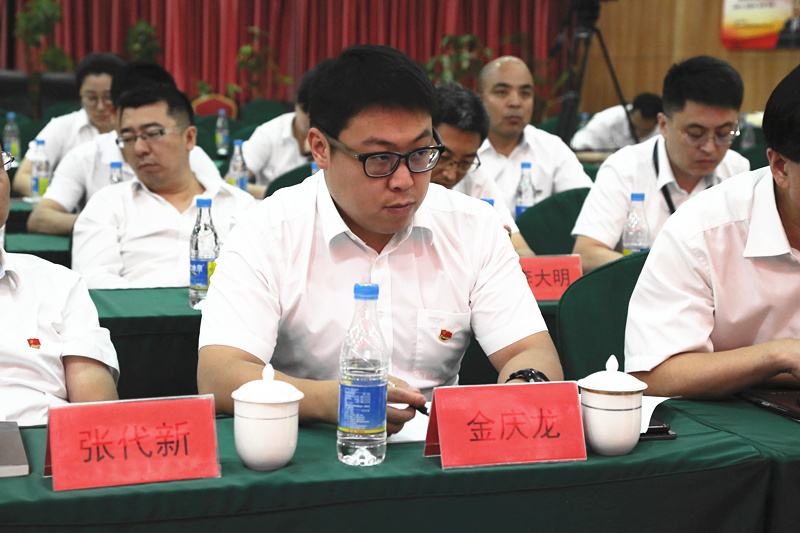 省国资委党委主题教育企业巡回指导组成员金庆龙莅会指导。公司党委副书记、副董事长张代新主持。