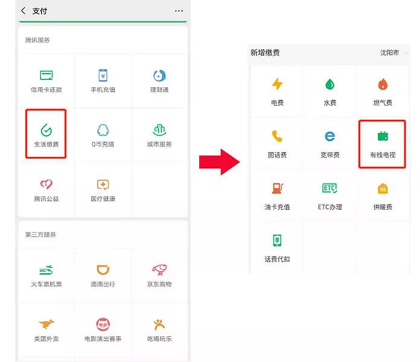 2.微信营业厅缴费。关注bw必威西汉姆联官网微信服务号,即可通过“微·营业厅—快捷缴费”功能实现基础收视费缴纳。
