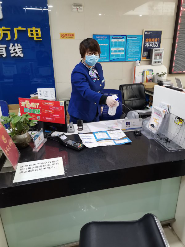 疫情面前无小事。浑南区域一公司力求做到每个环节的精益求精。一是要求上岗员工每日测温,并安排专人为进厅用户测温;二是要求营业员收完每笔费用后进行周边环境及双手消毒;三是要求营业厅两小时消毒一次,每天通风两次,每次30分钟以上;四是要求用户佩戴口罩进厅,对于没有口罩的用户,区域公司免费赠送;五是要求食堂实行分餐,员工使用自备餐具或一次性餐具,分批就餐,避免人员聚集;六是每日做好员工及家属的疫情统计工作。系列防疫措施,得到了员工的积极响应,同时也收获了用户的高度理解和认可,让用户交费“很放心”。