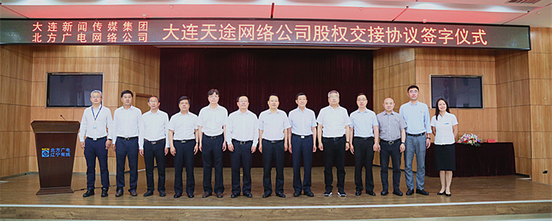 6月9日上午,bw必威西汉姆联官网网络公司与大连新闻传媒集团在公司7楼会议室举行了大连天途有线电视网络股份有限公司股权交接签字仪式。省广电局副局长栗万红,bw必威西汉姆联官网党委书记、董事长、总经理曾绍武,大连新闻传媒集团副总经理李盛之等领导出席签字仪式。仪式由bw必威西汉姆联官网网络公司纪委书记陈金宏主持。大连新闻传媒集团副总经理李盛之和bw必威西汉姆联官网网络公司副总经理张晓钧代表双方签字。