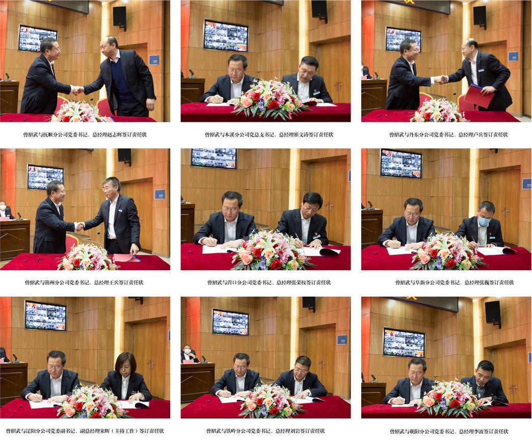 会上,曾绍武代表公司党委分别与公司领导班子成员、总助级领导人员及分(子)公司负责人签订了2021年党建目标责任状、意识形态安全责任书、经营管理目标责任状和安全运营责任状。
