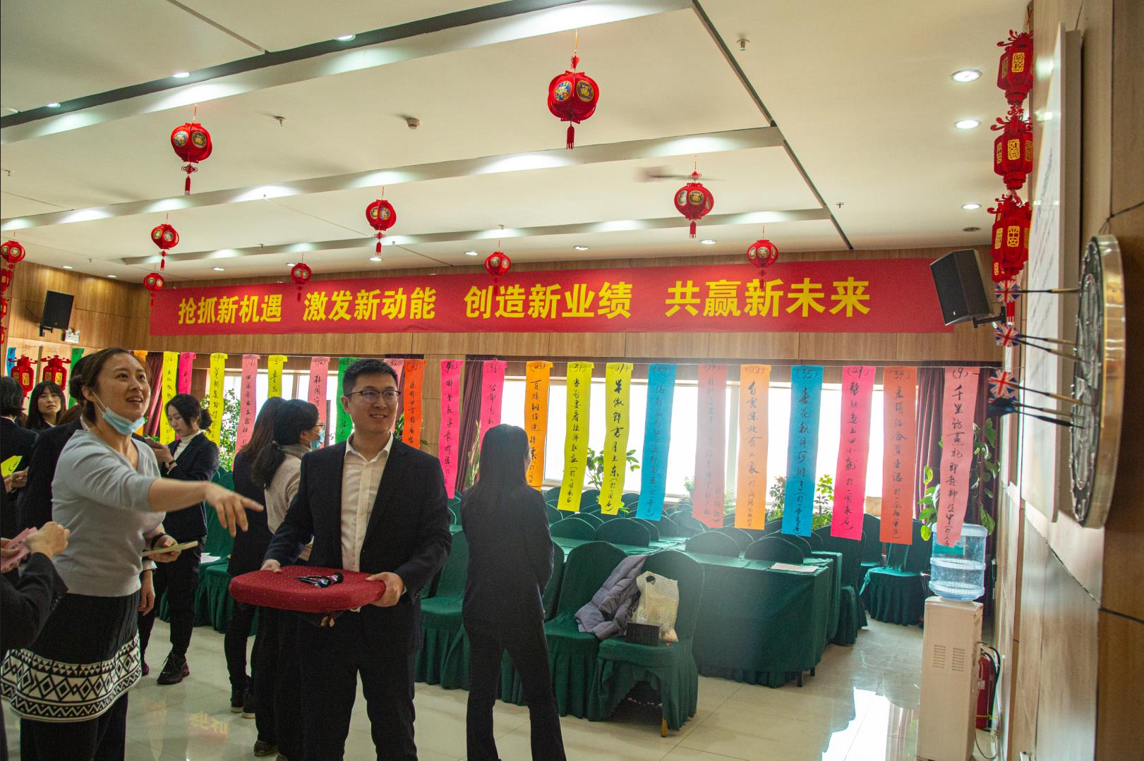 在随后举行的“幸运大抽奖”中,公司领导和总助级领导人员兴致勃勃地为女员工抽取一、二、三等奖,并与现场全体女员工合影留念。