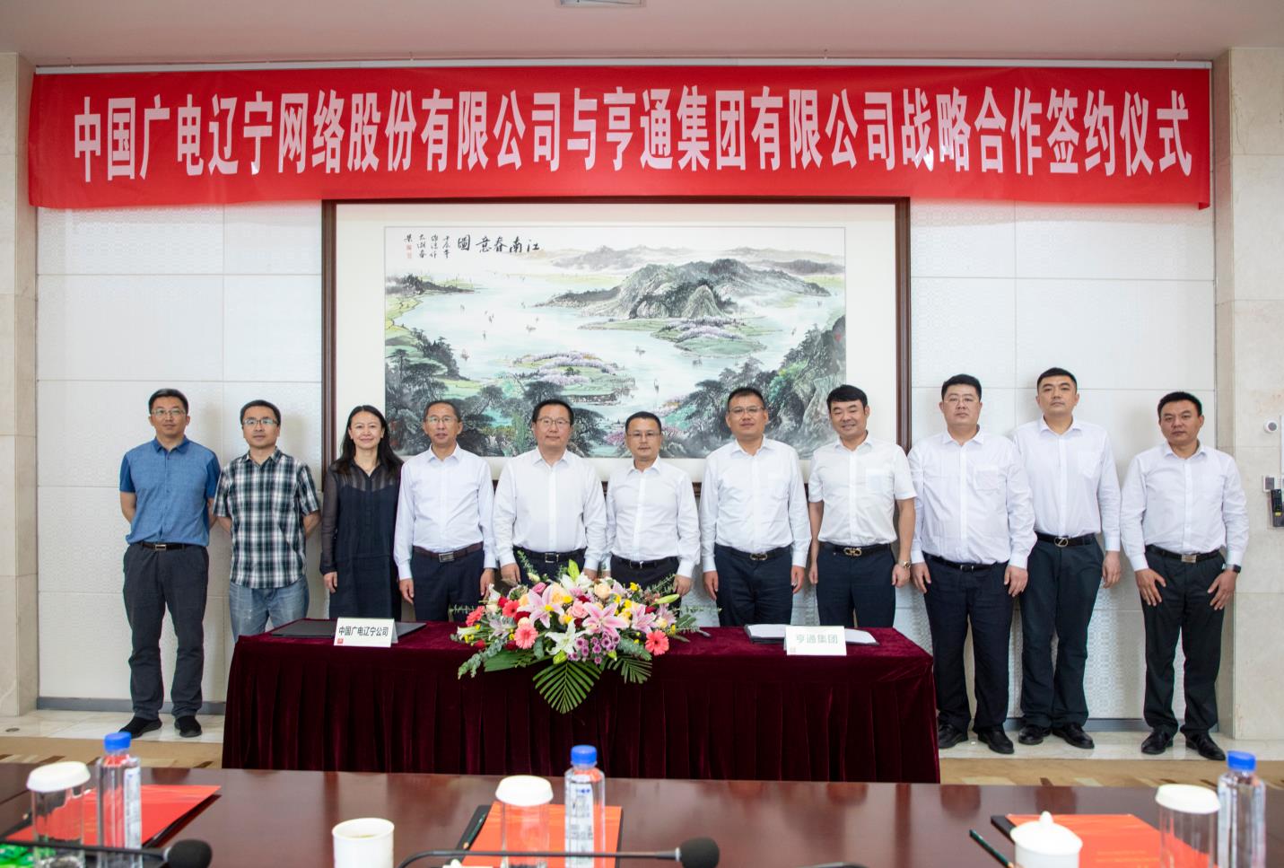 签约仪式前,双方领导进行了亲切友好的座谈交流,并在发挥双方各自优势,深化合作方面达成共识。曾绍武董事长在讲话中提出了五点建议:一是深化新基建领域的合作。基于5G基站、人工智能、大数据中心和智能互联网领域等方面开展合作;二是深化新平台领域的合作。基于辽宁广电“北方云”平台,其中包括节目播控、交互点播、数据中心、监看监播和指挥调度等方面开展合作;三是深化新网络领域的合作。基于辽宁广电有线、无线、卫星“天地一体”的网络建设开展合作;四是深化新研发领域的合作。基于新型光纤网络、智慧广电项目等方面开展合作;五是深化新业务领域的合作。基于智慧党建、智慧教育、智慧交通、智慧乡村以及智慧文旅等方面开展合作。