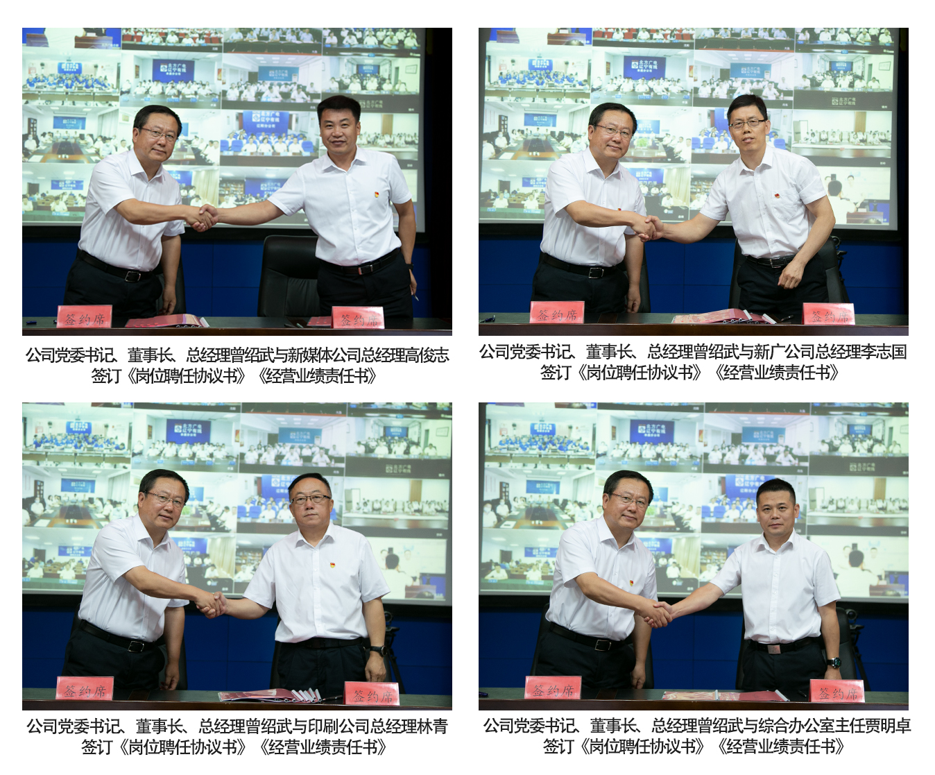 会上,公司党委书记、董事长、总经理曾绍武与公司经理层成员签订了岗位聘任协议书,并与公司副总经理、总工程师、总助级领导以及17家分(子)公司总经理签订了任期和年度经营业绩责任书。省公司领导与分管的职能部门经理层成员,分公司总经理与其他班子成员签订经营业绩责任书。通过契约化形式对经理层成员任期、职责范围、年度及任期绩效考核指标、薪酬兑现、退出机制等进行了约定。