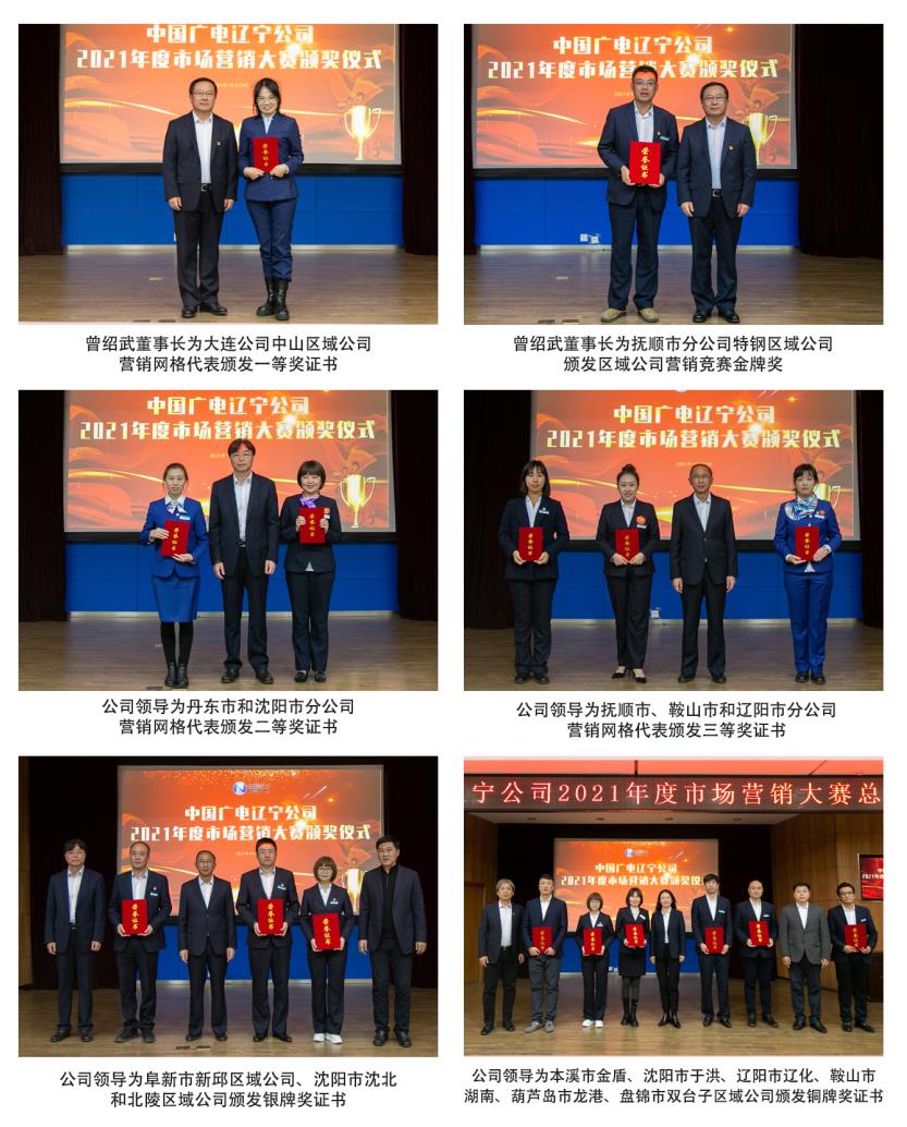 公司领导为沈阳市、营口市和葫芦岛市分公司颁发营销竞赛一、二、三等奖