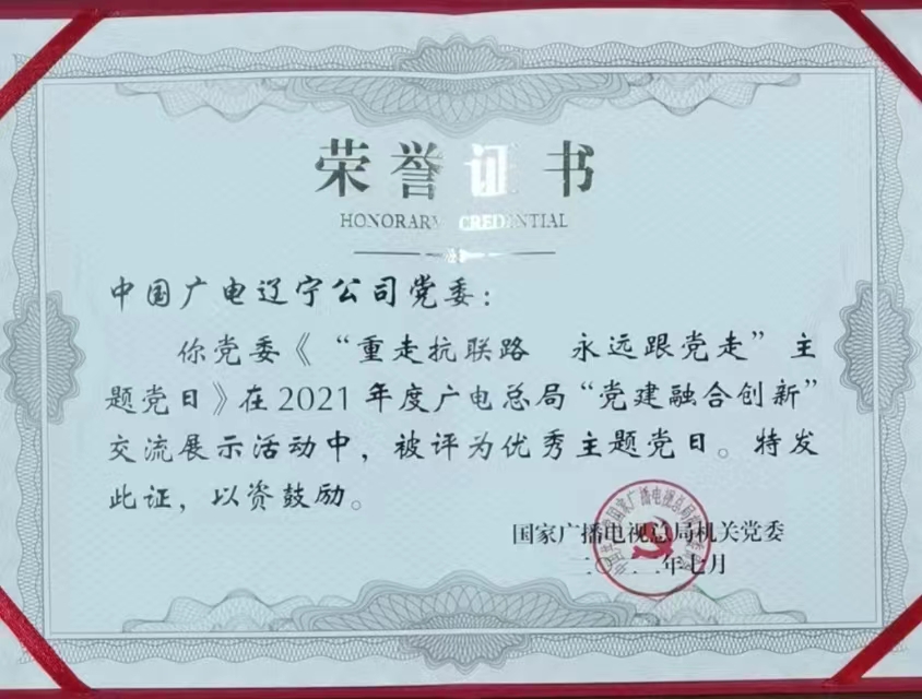 公司党委主题党日获评广电总局2021年度优秀主题党日
