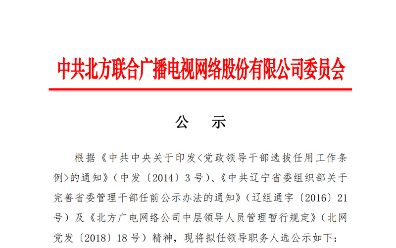 关于公司拟任领导职务人选的公示