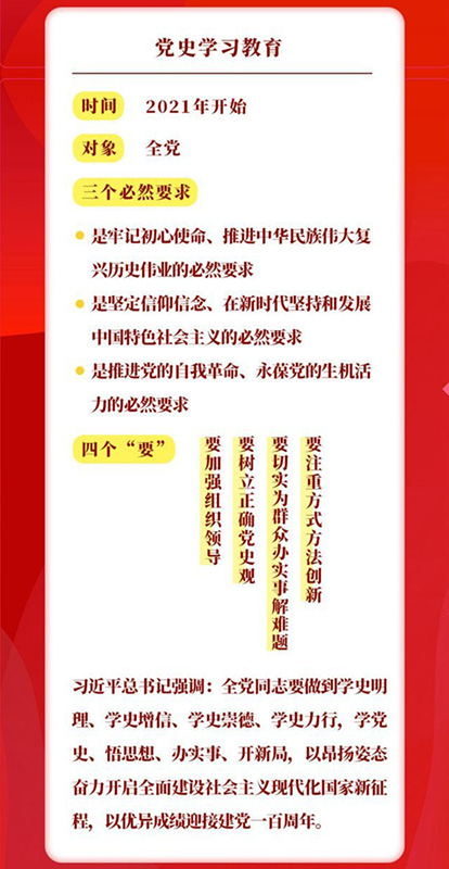 这次党史学习教育,是党的十八大以来第5次党内集中教育(前4次分别是:党的群众路线教育实践活动、“三严三实”专题教育、“两学一做”学习教育、“不忘初心、牢记使命”主题教育),又恰逢建党百年的重大时刻,“两个一百年”历史交汇的关键节点,具有十分深远的意义。