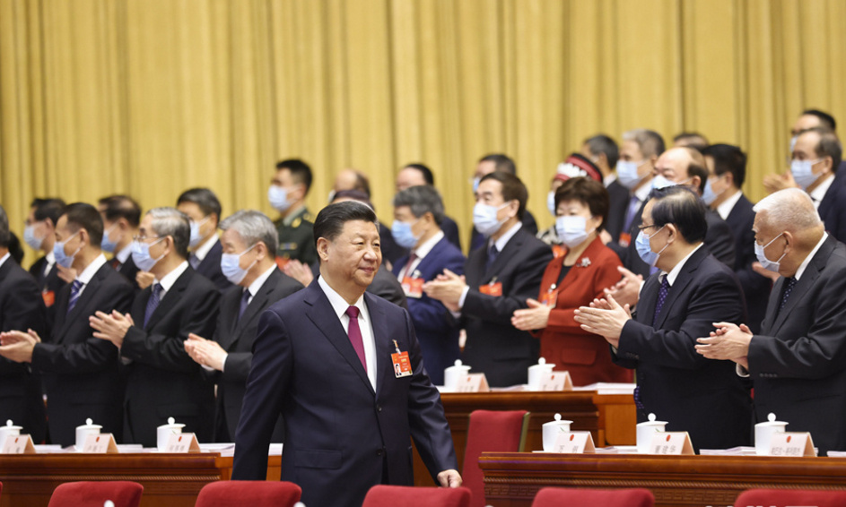 习近平、李克强、汪洋、王沪宁、赵乐际、韩正、王岐山和大会主席团成员在主席台就座。