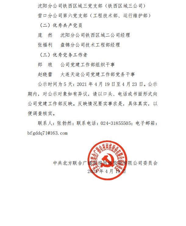 bw必威西汉姆联官网网络公司党委关于全省和省(中)直企业“两优一先”推荐对象的公示