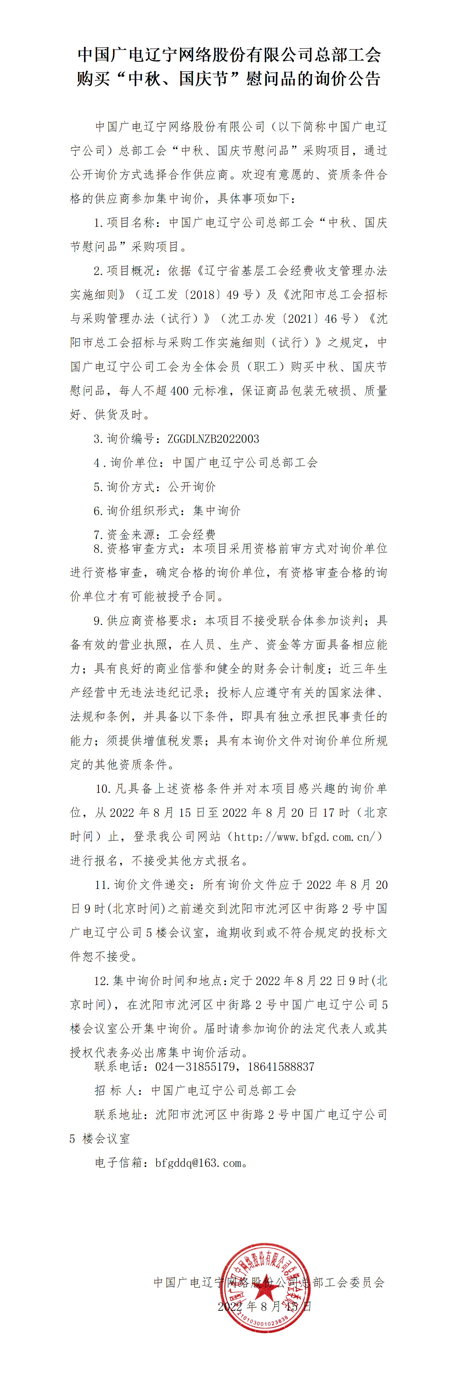 bw必威西汉姆联官网总部工会 购买“中秋、国庆节”慰问品的询价公告