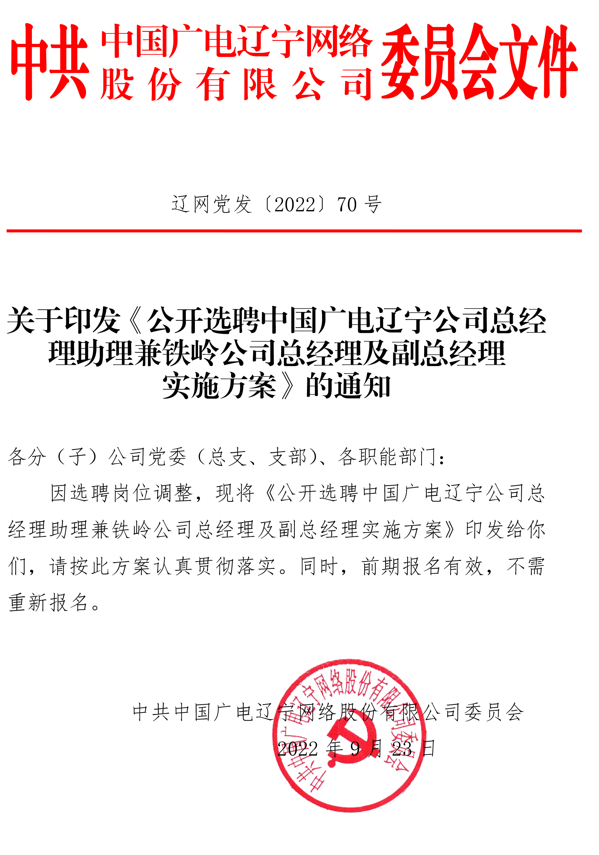 • 关于印发《本溪市分公司总经理 公开选聘实施方案》的通知
