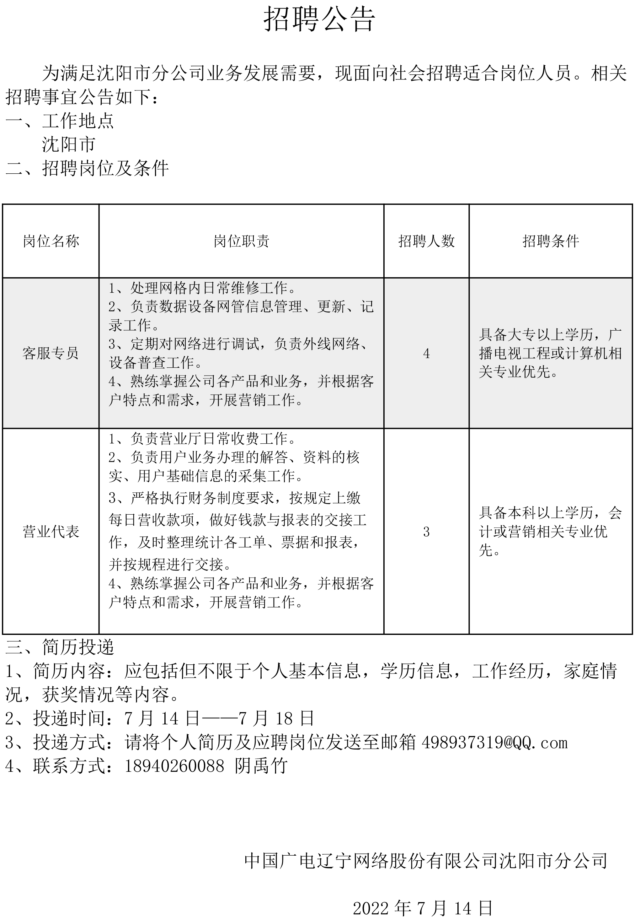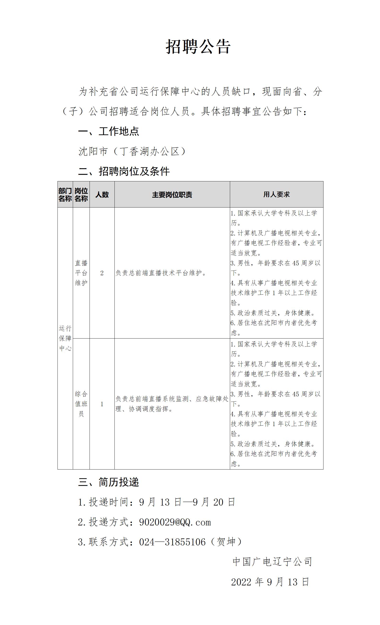 为满足省公司客服中心业务发展需要,现面向省、分(子)公司内部招聘适合岗位人员。相关招聘事宜公告如下: